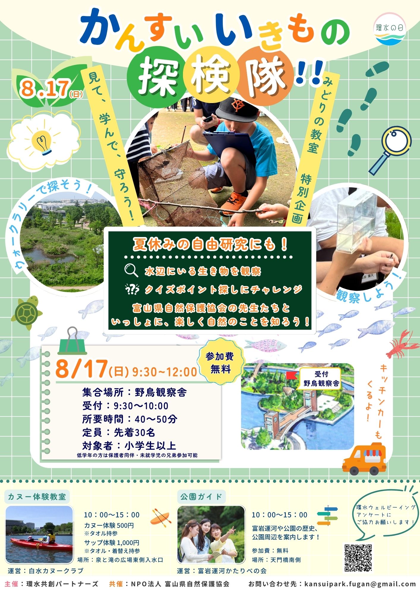🌱みどりの教室 特別企画🌱 🔍かんすい いきもの探検隊!! 開催✨ 8月17日(日)9:30〜12:...