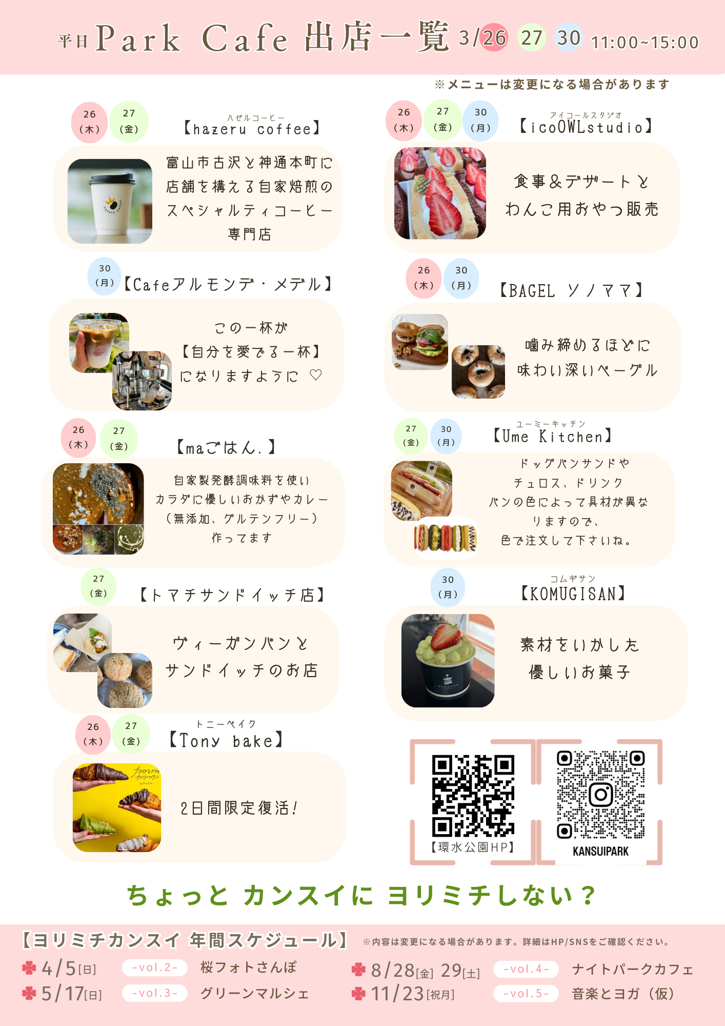 ※3月26日(木)は天候不良のため中止とさせていただきます